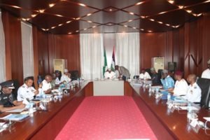 PRESIDENT BUHARI WITH SERVICE CHIEF SECURITY BRIEFING